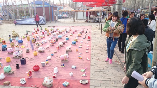 今日1年生の授業が終わった後、学生に誘われて自然公園に行って来ました。廊坊師範学院からタクシーで10分もかからず6元。歩けば20分くらいでしょうか? 自然公園というくらいだからさぞ緑があるんだろうと思いきや全く色がなく、それどころか入り口は大きな工事中で粉塵がすごい。出鼻を挫かれました。