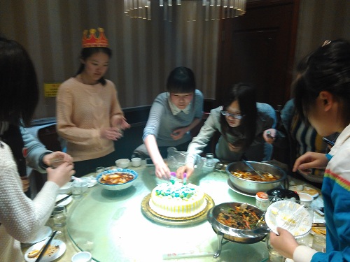1年生の劉さん、誕生日のお祝い
