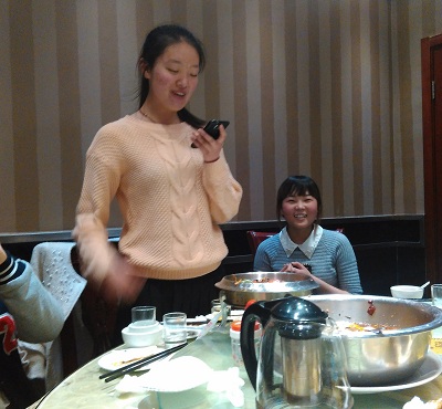 5時頃になり、自然公園から撤退。今日は劉さんの誕生日ということで、これから食事に行きました。場所は学校近くの「香口魚」という中華料理屋です。毎回食事に誘われると聞かれることがあります。