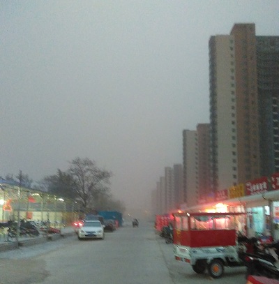 この間北京に行った時、空気恐ろしく悪いなあと思ったんですが、今日は確実にそれを越えました。風の強さも相まって、はっきり私にスリップダメージを与えていると分かります。こんな日に散歩やジョギングをしようものなら自殺行為ですね~。心なしか人が少なかった気もします。