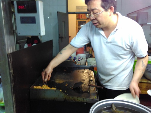 この人が食堂の1画でご飯を作っているおじさん。いつもいつも本当にお世話になってます!顔を覚えてくれたみたいで、目の前にいくと「今日は何食べたいんだ?」みたいなことを中国語で聞いてくれるようになりました。いつもどおりチャーハンを注文した後、おじさんと会話をするのが流れです。