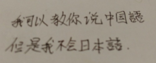 ”私は先生に中国語を教えたいけど、日本語ができない”