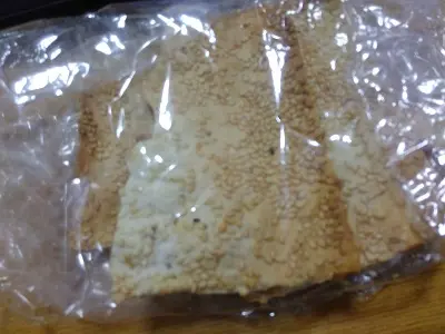 学生からお土産をもらいました! 先週実家に帰ったついでに買って来てくれたみたい、嬉しいですね。烧饼(shao1 bing3)といい、”小麦粉を練って丸型にして焼いたもの(表面にゴマをふってあることが多い)”です。煎餅とは違って醤油を塗って焼いたりしていないので、ゴマと小麦粉本来の味で美味しいです!