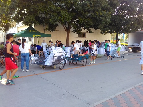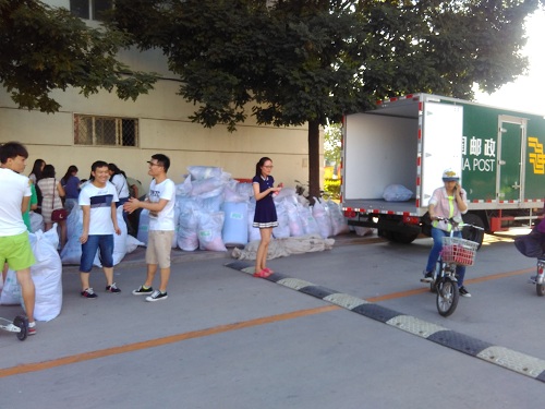 白い袋に入れられているのは紛れも無く4年生の荷物です。決してゴミではありません・・・。私は恥ずかしながら最初はゴミかと思い、一緒に歩いてた学生に「ゴミじゃないですよ!」と言われてしまいました。日本ならダンボールに入れるところ、中国ではダンボールは一般的ではないようです。