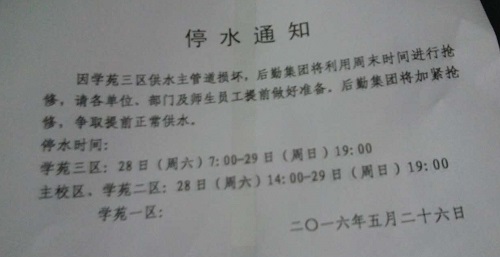 というわけで、明日は昼にプール、夜に温泉に行くことにしました。学生と一緒に、断水というこの機会を利用して遊びに行こうという計画です。プールは1人30元と、地元にあったプールに比べるとやけに割高。ここ中国北部は慢性的な水不足により水道代もびっくりするほど高いです。また、中国の温泉では水着の着用が一般的とのこと。やはりすっぽんぽんの方が良いと思いますが、これはこれで一つのルールですからしょうがないですね。