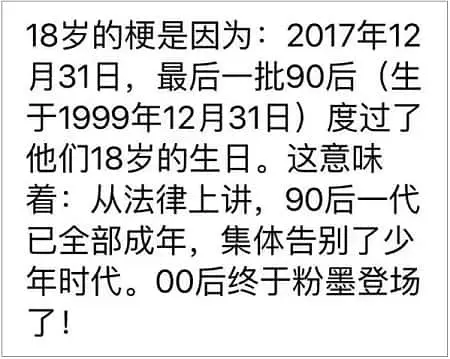 したがってもれなく全員成人という意味です。(中国では法律上18歳が成人)
