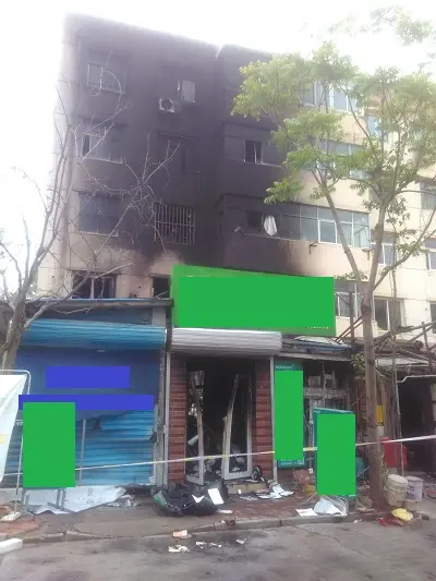 焼け跡を見ると最上階まで燃え広がっていますし部屋の中も真っ黒。
