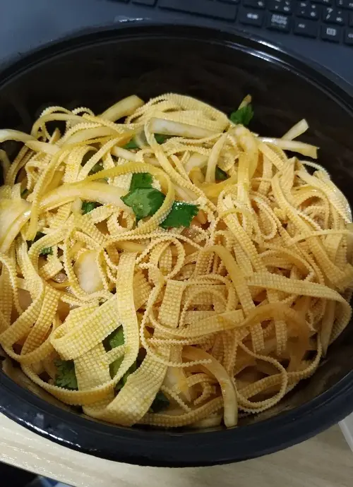 豆腐丝分かりますよ!うちはネギの千切りを乗せてます。私は中国出身で幼少期中国にいました。なかなか日本のあれこれにまだまだ慣れないところがたくさんあります。