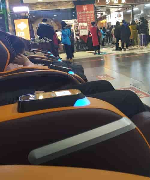 中国の複合商業施設内にはマッサージチェアがよく置かれるようになりました。普通の椅子の代わりに置かれ、ちょっとした休憩にも使えたりします。