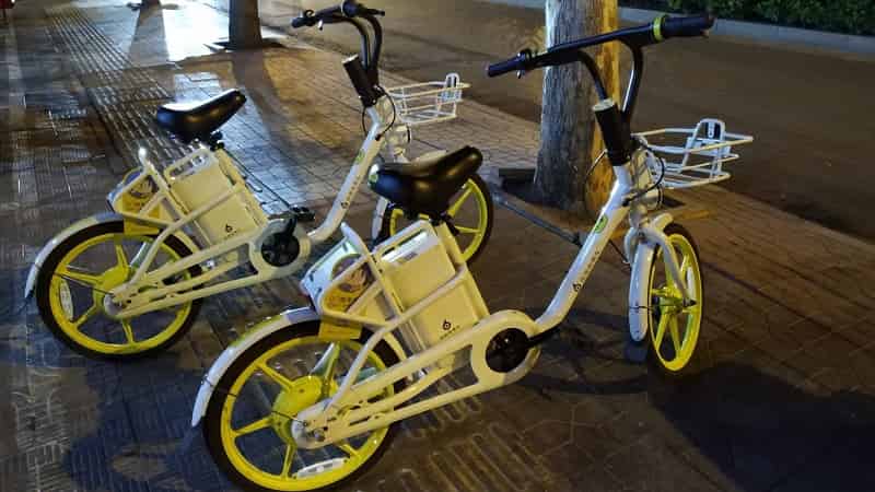 運営している会社にもよりますが、この白いものは2元、青いものは3元くらいで借りられます。そんなに高くはないので利用する人も多そうですが、実は台数が限られています。レンタサイクルよりも圧倒的に少ないです。
