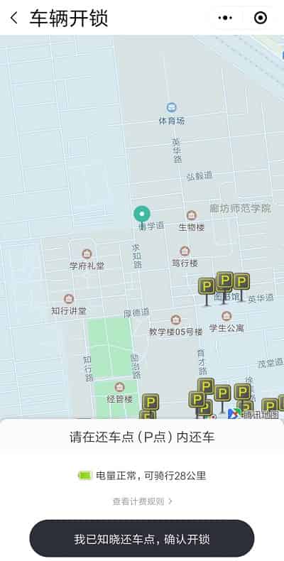 まずはスマホから自分の行き先を入力します。ここでは地図上に大体の場所をマークすることとなります。そしてそのマークした場所に最も近い指定された駐輪場に停めなければいけません。このルールを破ると、10元の罰金が科せられるそうです。つまりこのレンタル電動自転車は、常に決められたところにあるということです。