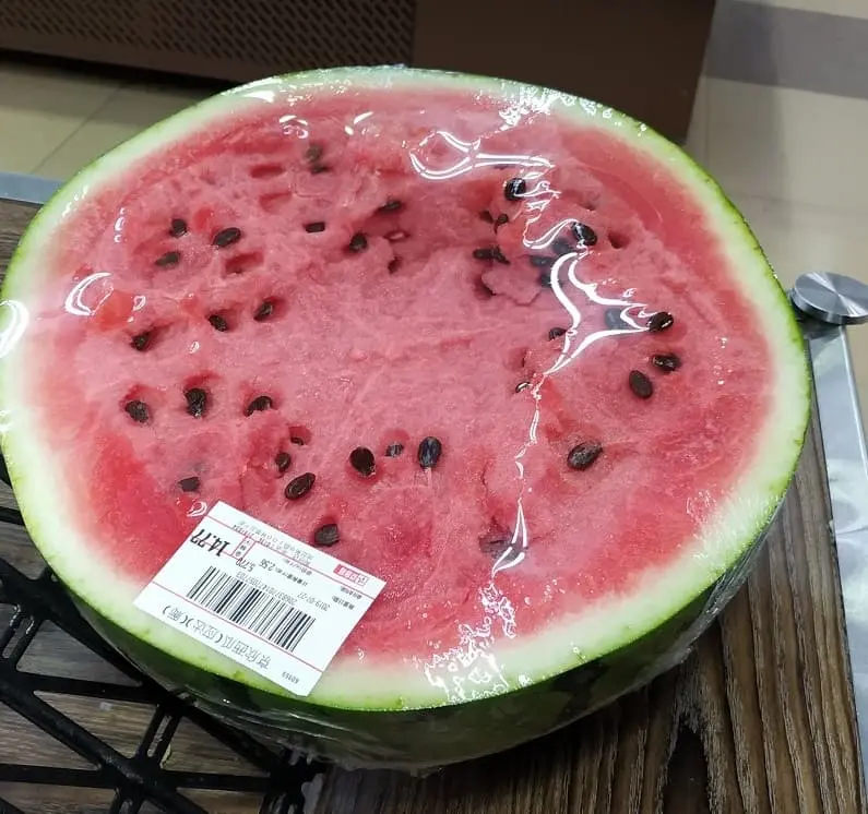 ちなみにこのスイカ半玉で4kgくらいあるんですが、価格は14元(230円)くらい。日本人から見ると安すぎですが、中国では高いほうです。安いものなら2元、3元のものもありますからね。