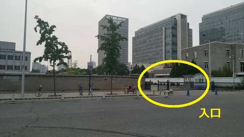 なお、パスポートの更新等は領事部がある東門から入ります。東門はこのように殺風景ですが、入り口には警備員が立っていますのですぐ分かります。