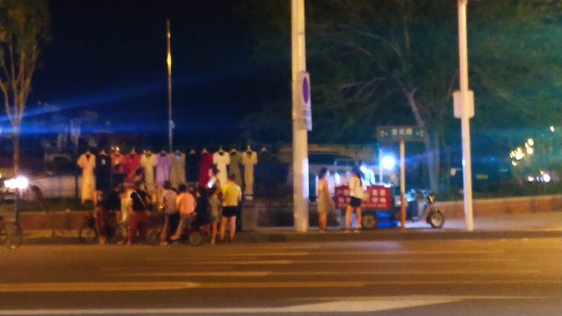 上の写真では、服を売っています。毎晩ここにハンガーラックを持って来て服を並べているのでしょう。路上ですから決して品数は多くないのですが、お客さんの期待に応えようと一丁前にオススメし、かなり手慣れた雰囲気がありました。