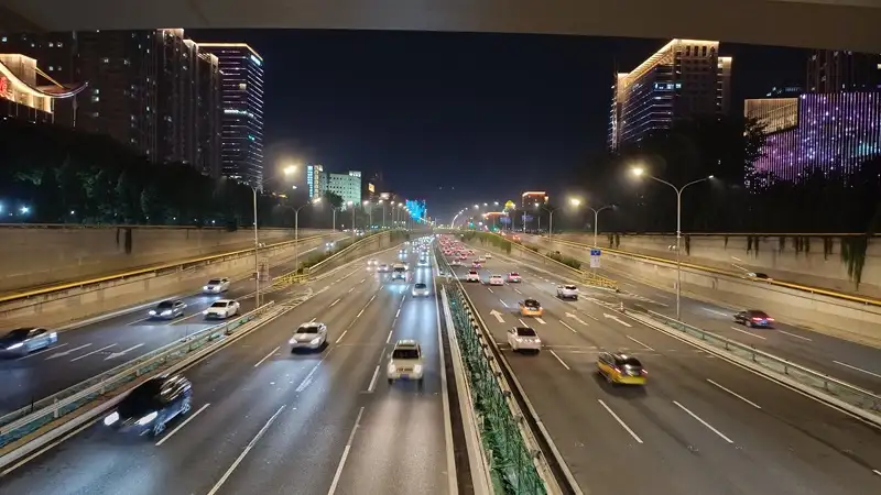 ↑の写真は五道口からの帰り道にある高架橋から撮った写真です。北四环中路という道の、地下鉄の13号線と交わるところで撮影しました。この道がとんでもなく広い。片側9車線で、全部で18車線ある恐ろしく広い車道です。片側9車線を4、3、2で分割して、それぞれ直進、右折用にしてるあたりも複雑で、こんなところ運転する自信が全くないです。ただ夜景としてはきれいでした。