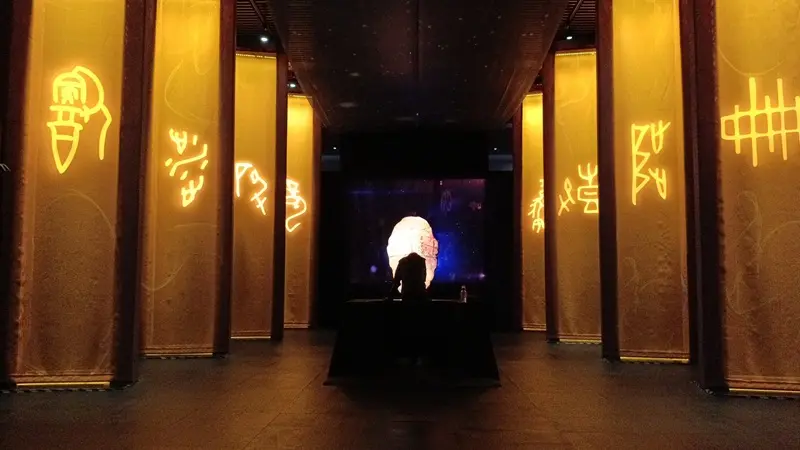 南側の建物は一応図書館ではあるみたいだけど図書館という感じはほとんどなくて、実際は博物館です。中国の古い書物とかが展示されていました。博物館的なものを見るときはやっぱりガイドさんに案内してもらいながら説明を聞くスタイルが私は好きです。自分だけだと何の専門知識もないから、展示品を次々流すように見てしまって結局何も得てないみたなことになっちゃいます。でもここにはちゃんとガイドさんがいました。ただし、当然中国語の案内なのでその面白さは私にはちゃんと理解できず… ちょっともったいないなと思いました。竹か何かに細かい漢字が書かれている物なんかも見たんですけど、あれはたぶんめちゃくちゃ価値があるものですよね。