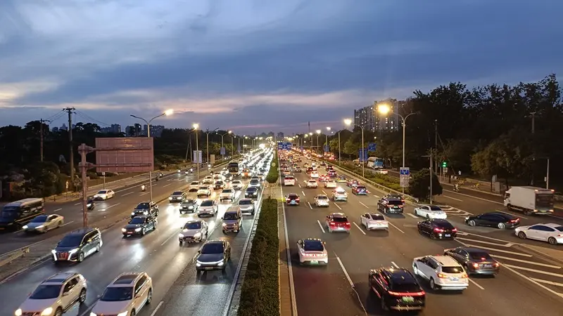 帰りはもう夕方6時頃になり徐々に真っ暗に。日が暮れるのが早くなってきて、だんだん秋を感じてきました。同じく高架橋から撮った車の様子は、2時間前の様子とは違ってどっちの車線もたくさん車が走ってます。ちょうど仕事が終わる時間だったから帰宅ラッシュです。