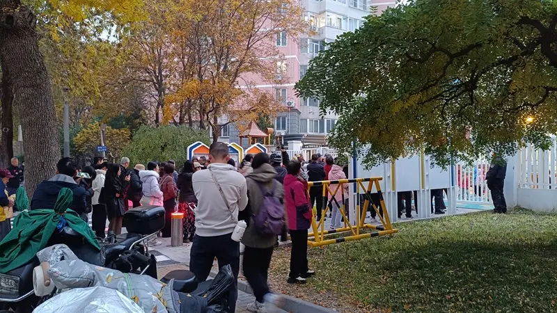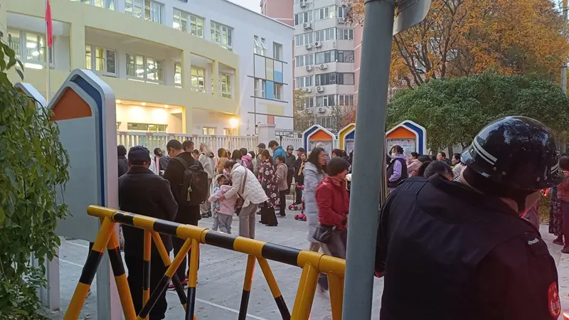 そしてこの写真は幼稚園の入口の写真です。こっちもたくさんの保護者が入口で待っていて、周りには見えにくいですがさすまた持ちの警備員がいます。