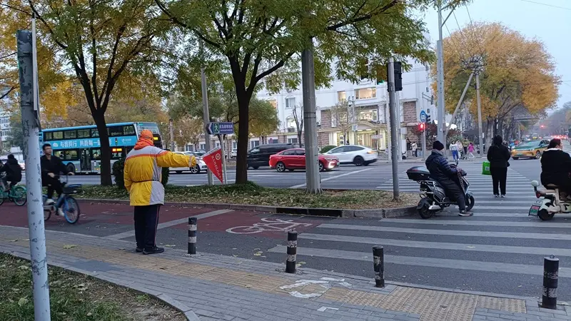 それから、小学校と幼稚園の近くの交差点や横断歩道のあたりには、このような黄色いベストを来た人が立ってました。これは今回初めて見ました。児童生徒が道路を渡ろうと思ったとき、この人たちは車を止めて安全を確保したうえで道路を渡らせてあげます。日本でいう緑のおばさんと同じですね!