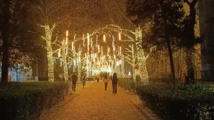 中央大街は直線1.5キロくらいの商店街兼並木道です。私が行ったときは木にイルミネーションをつけている作業中でした。もう12月なのに、もっと早くつけてもいいんじゃないのと思いましたけど…
