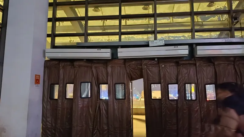 ↑の写真は駅の入口にある風除けのカーテンなんですけど、カーテンの上に送風機があって風が出てきてます。これで外気をシャットアウトして建物内の温度を保ってるみたいです。カーテンは廊坊でも北京でも見かけますけど、送風機はハルピンで初めてみました。