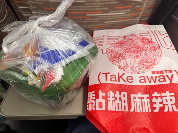 帰りの高鉄では日本ではないサービスを利用しました。あらかじめ出前を注文しておくと、駅に着いた時に席まで食べ物を運んでくれるサービスです。瀋陽駅で麻辣烫を注文しておいたので、席で食べて温まりました。