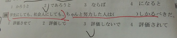 呆気に取られるとはこのこと。文法の問題ではなく、彼女個人の考え方の問題だったわけです。つまり「努力している人を評価するなんてお前は何様のつもりだ。失礼だろう!」という考え方を持っており、結果的に3を選んだ。これに関しては日本語の範疇を越えた問題があります。「努力している人はちゃんと評価してあげなければいけないでしょ?」と、彼女にとって何の意味も成さない説明を繰り返すだけとなった私は、完全に方策を失いました。