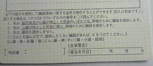 免許は実際に学生に渡して見せます。私も初めて見せた時は全く気にしなかったんですが、免許の裏には「もし事故で脳死したり死んだときに臓器提供をするか」の意思表示する欄があります。学生はこの点に興味を持っていました。臓器提供するかしないかについて、教室で話してみても面白そうですね!