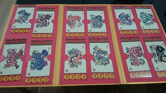 この写真はもらったお土産の一つ。中国剪纸艺术、いわゆる切り紙です。干支全種類あって、それぞれ本のしおりとして使えます。綺麗なので使うのがもったいなくなるくらいですね~。
