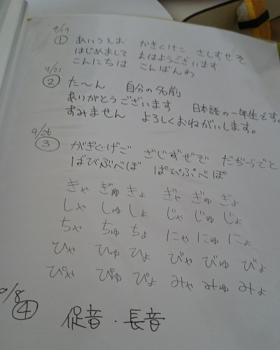 あくまで会話の授業ですから、平仮名・片仮名はどうやって書くかに重点は置かず、正しい発音ができさえすればいいことにしました。五十音を覚えることで精一杯の現状ですから、できるだけ余分な知識を黒板に書いたりしないように意識しました。
