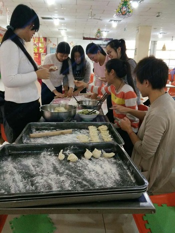 12月21日は冬至でした。中国北方の冬至は一般的に水餃子を食べる習慣があり、どの家でもお母さんや子供が餃子を包んで食べたりするそうです。その風習にならって、昨日は2年生と一緒に餃子を作ってみんなで食べました!