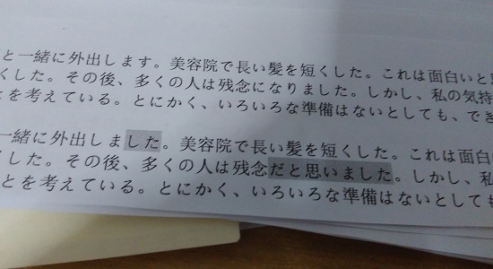 授業の最後に、発表の内容を書いた紙を回収しました。これは来週までに私は訂正して返します。私の宿題ですね。