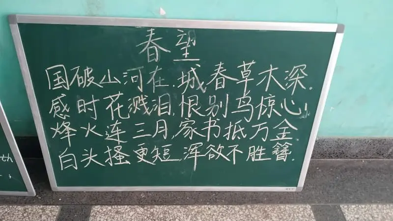 学生によるとこれは唐時代に作られた詩(唐詩)だそうです。5文字でリズムをとるのが唐詩の特徴だそうですね。