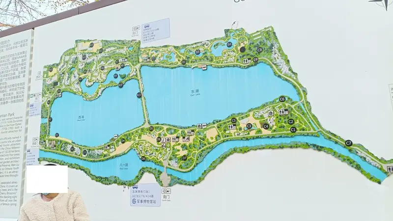 私たちが歩いたのは、公園を一周するコース。右下の東門から入って全部ぐるっと回りました。ホントにゆっくり歩いて、寄り道しながら2時間くらいかかりました。ボートにも乗れるんですけど、4人乗りで1時間200元(4000円)です。今回は桜が目的だったので乗りませんでしたが、また今度機会があれば乗ってみます。
