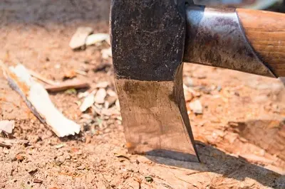 (duò) 包丁や斧のようなもので力を入れて叩き切る