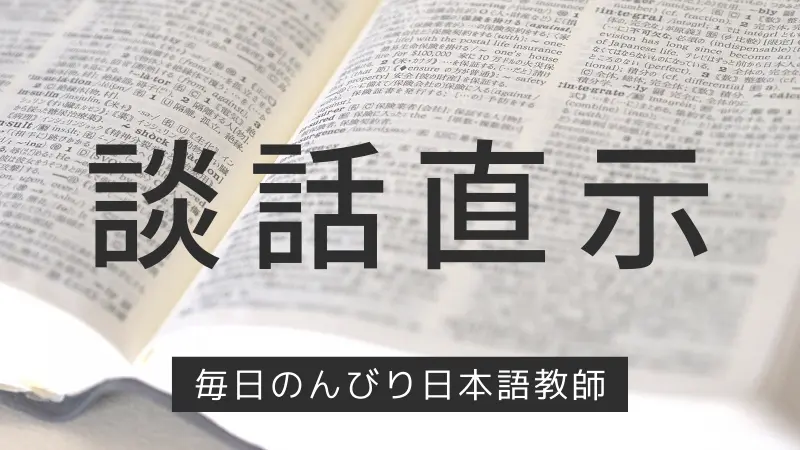 談話は一種の空間として捉えられ、また発話は時間の流れに沿って展開することから、談話直示には「その」「この」などの場所を表す直示表現や「次」「あと」などの時間を表す直示表現が用いられます。