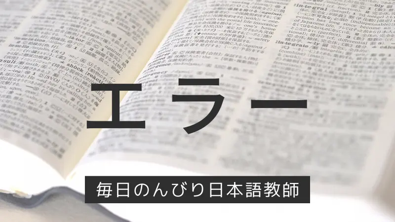 エラー(error)とは、誤用の分類の一つで、その時点の学習者が作り上げた独自の言語体系の規則に基づき、どんな場面でも一貫して繰り返し生じる誤用のことです。エラーは学習過程で必ず起きるものであり、誤用分析(error analysis)ではこれらを分析することで学習者の学習過程を明らかにしようとします。