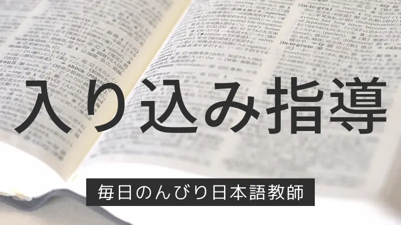 入り込み指導とは、「在籍学級での授業中に日本語指導担当教員や支援者などが入って、対象の児童生徒を支援する」(文部科学省 2019: 22)指導形態のことです。入り込み授業とも呼ばれます。入り込み指導は外国人児童生徒等に直接かかわって生活面の適応、日本語学習、教科学習などの指導や支援を行う日本語指導担当教師の役割として外国人児童生徒受入れの手引きで挙げられているものです。