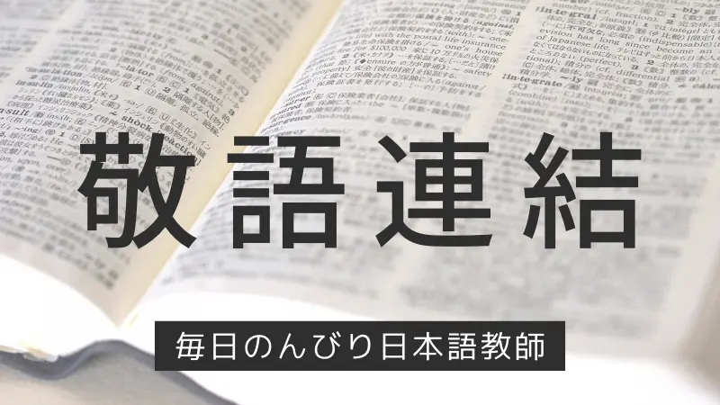 敬語連結とは、二つ(以上)の語をそれぞれ敬語にして接続助詞「て」でつなげたもののことです。例えば「お読みになっていらっしゃる」が挙げられます。これは「読む」を「お読みになる」に、「いる」を「いらっしゃる」にして繋げただけ。つまり「読む」と「いる」という二つの語をそれぞれ敬語にして繋げただけなので二重敬語には当たらず、敬語連結に当たります。