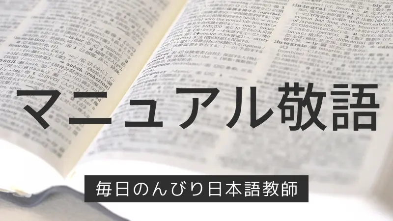 マニュアル敬語とは、「職場での言語使用、特に接客の場面での言語使用について具体的な言語表現などを示すもので、新入職員や臨時職員の指導に用いられるもの」(文化庁 2007: 9)のことです。具体的には「ご注文は以上でよろしかったでしょうか」「1,000円になります」「1,000円からお預かりします」「お箸のほう、お付けしますか」「お値段、サービスさせていただきます」などが挙げられます。