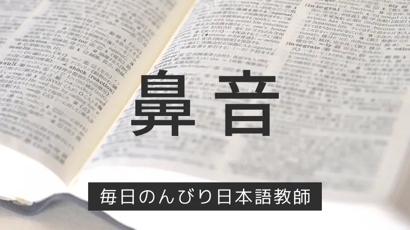 日本語標準語で現れる鼻音は [m][n][ɲ][ŋ][ɴ] です。鼻音は口腔内で閉鎖を作り、代わりに口蓋帆(軟口蓋後部と口蓋垂)の先端である口蓋垂を下げて呼気を鼻腔に通すことで発音します。口蓋帆は筋肉で、骨がないので自由に動かすことができます。ちなみに、何か飲んでいるときに突然笑ったり驚いたりして飲み物が鼻から出てくるのは、口蓋帆が下がって鼻腔への通路が開いたことが原因です。