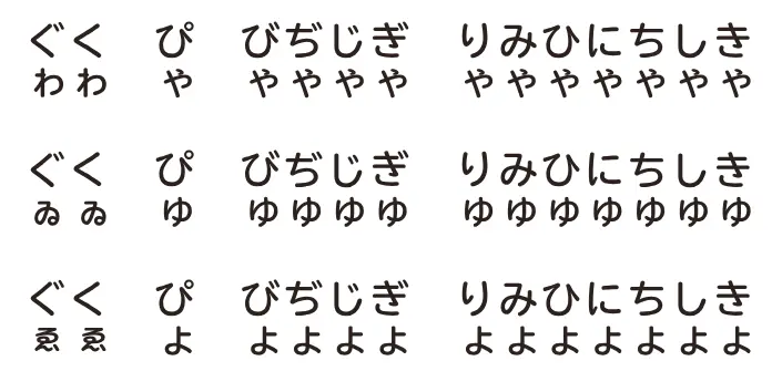 例えば cat を発音するとき、たぶん「キャ」と言えるはずなので。cute なら「きゅ」に近そうです。でも「きょ」に近い音の英単語はちょっと分からないので、全体的に英単語を使った一貫した指導ができないかもしれません。