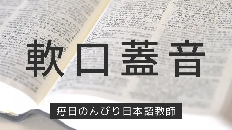 軟口蓋音とは、後舌と軟口蓋で調音して作る音です。日本語ではカ行子音[k]、ガ行子音[g]、鼻音化したガ行子音[ŋ]、「わ」の子音[ɰ]が該当します。