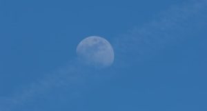 (1) うっすらと月が見える。