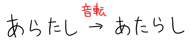 いろんな音転の例を紹介しましたが、音転した音形、語形はどうしても「おかしい」「間違い」って感じてしまうはず。それもそうでこれまで聞いてきた音、使ってきた音と違うからその感覚は当然なんだけど、でも、日本語の歴史を見ると音転した語形がそれまでの語形を追いやって取って代わる例が見られます。