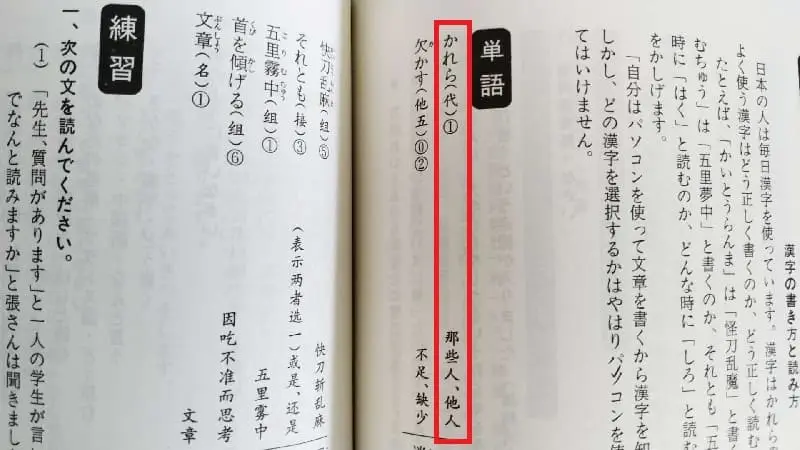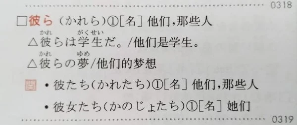 N5、N4の単語を網羅した参考書には「彼ら」の欄に「彼たち」も記載されていました! しかしこの参考書は著者、編者に日本人の名前が見つからないので信頼性に欠けます。