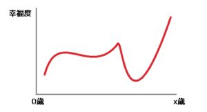 紙には縦軸に幸福度、横軸に年齢を取って、ちょうど上のように自分の人生の浮き沈みを書いてもらいます。横軸の左端は0歳、右端は現在の年齢です。5分か10分か時間与えてグラフを書いてもらって、人生のターニングポイントで何があったかを説明できるように日本語考えておいてもらいます。